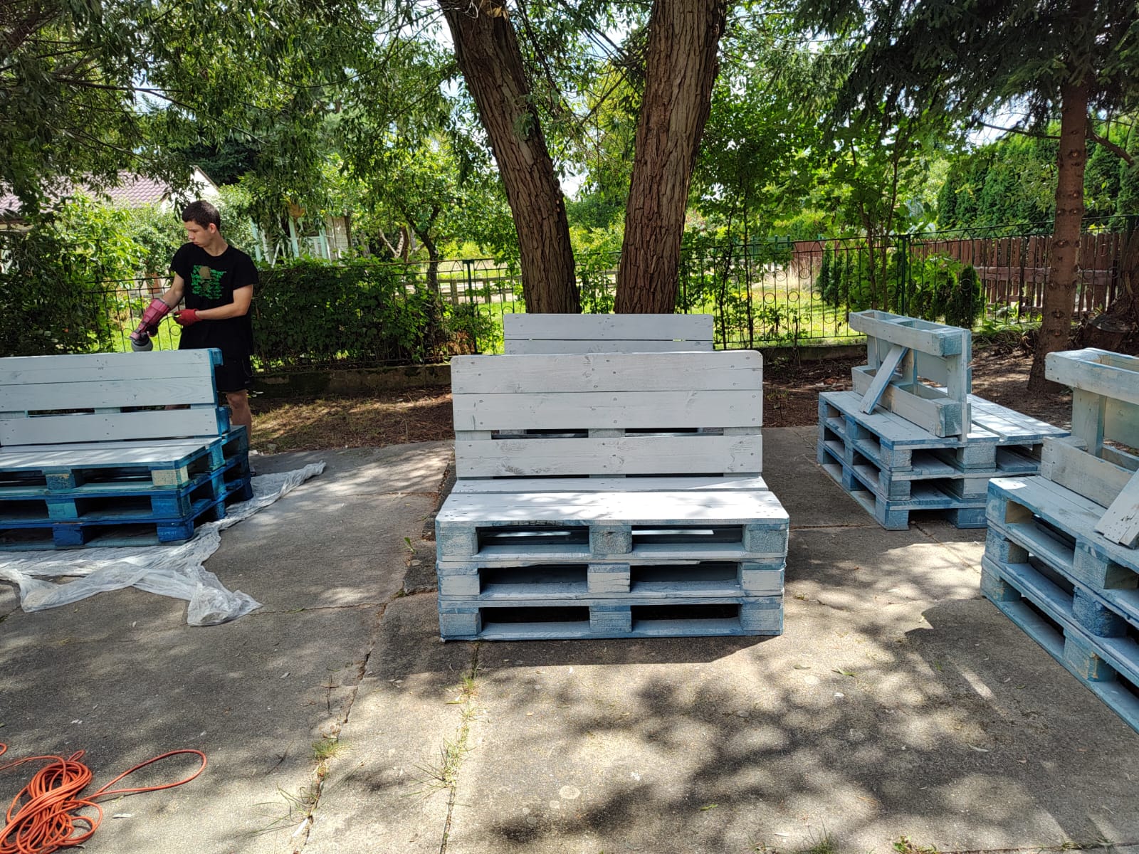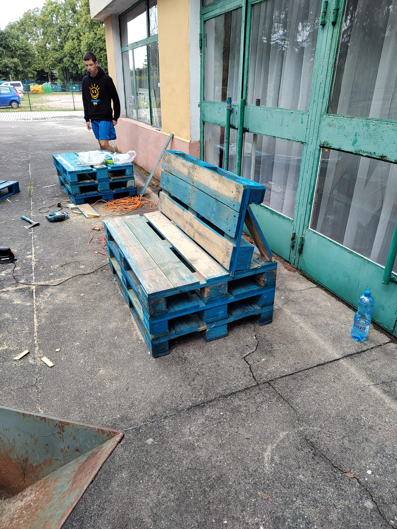 - Z inicjatywy jednego działkowca powstały nowe ekologiczne ławki z palet znajdujące się przy Domu Działkowca