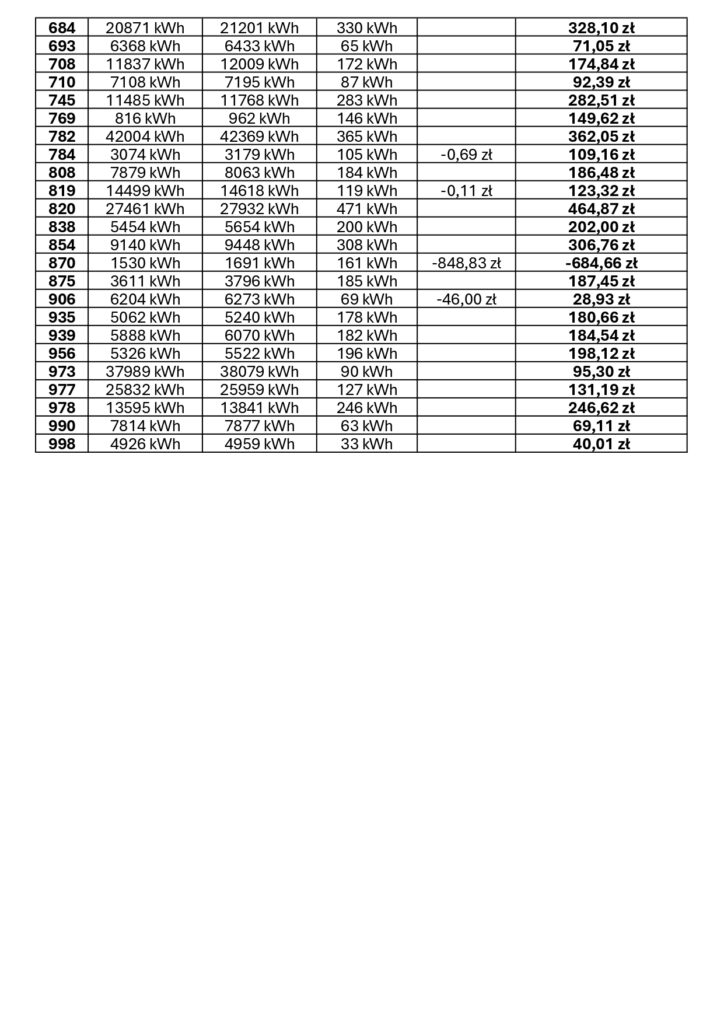 Nowe naliczenie za prąd – miesięczne za LISTOPAD 24R.