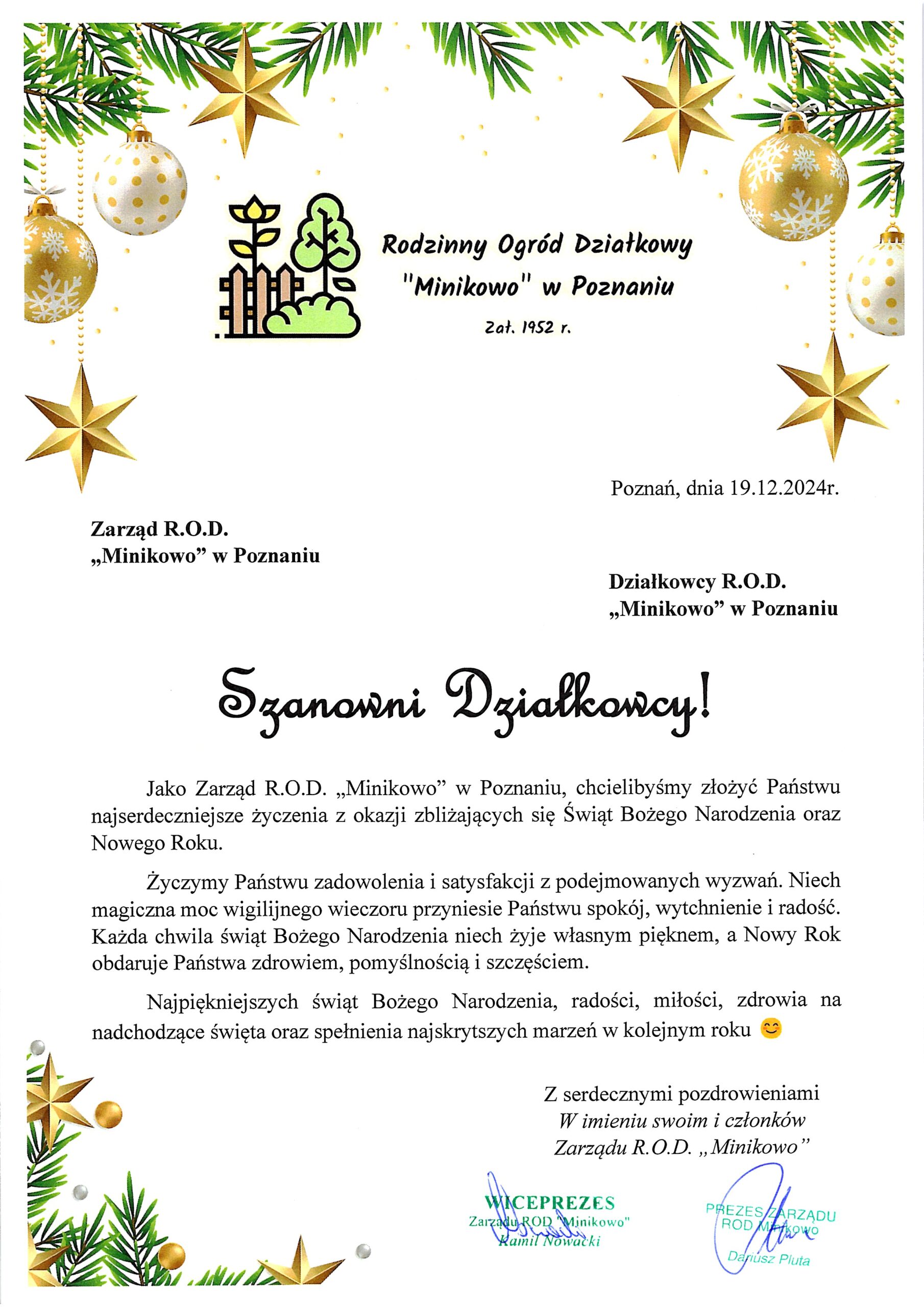 Życzenia świąteczne 2024r.