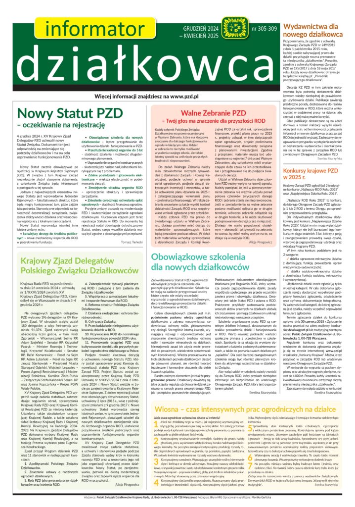 W najnowszym Informatorze „działkowca” m.in. o walnych zebraniach ROD , obowiązkowych szkoleniach dla działkowców, sprawie rejestracji nowego statutu PZD, Krajowym Zjeździe Delegatów PZD, konkursach krajowych w roku 20205 , wiosennych pracach ogrodniczych.